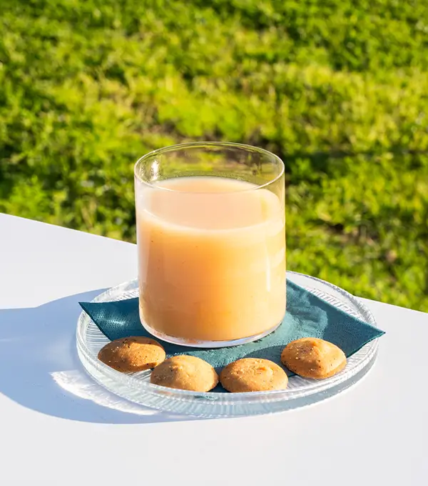 Succo di dolce pesca bianca matura dalla consistenza vellutata.