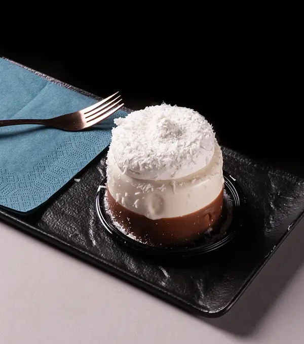 Semifreddo con mousse e daquoise al cocco, strato di nutella e base composta da fondo croccante.