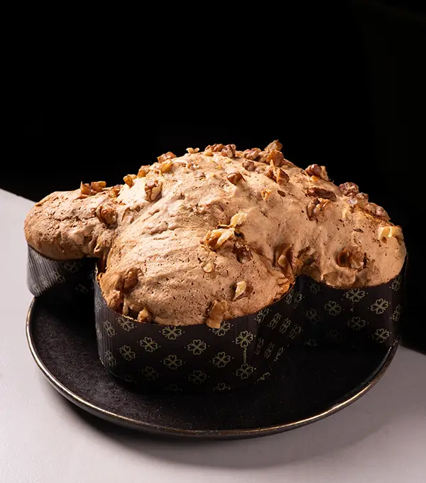 Colomba artigianale con una base di orzo e caramello, arricchita da noci croccanti. Un dolce che fonde la dolcezza del caramello con il profumo rustico dell'orzo per un'esperienza unica e golosa.